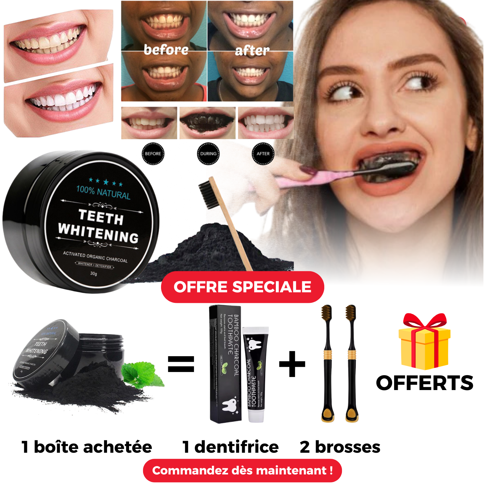 Offrez à vos dents un éclat incomparable avec notre poudre de charbon actif 100% naturel. Conçue pour blanchir en douceur et éliminer les taches tenaces, elle est le secret d'un sourire sain, éclatant et confiant.
